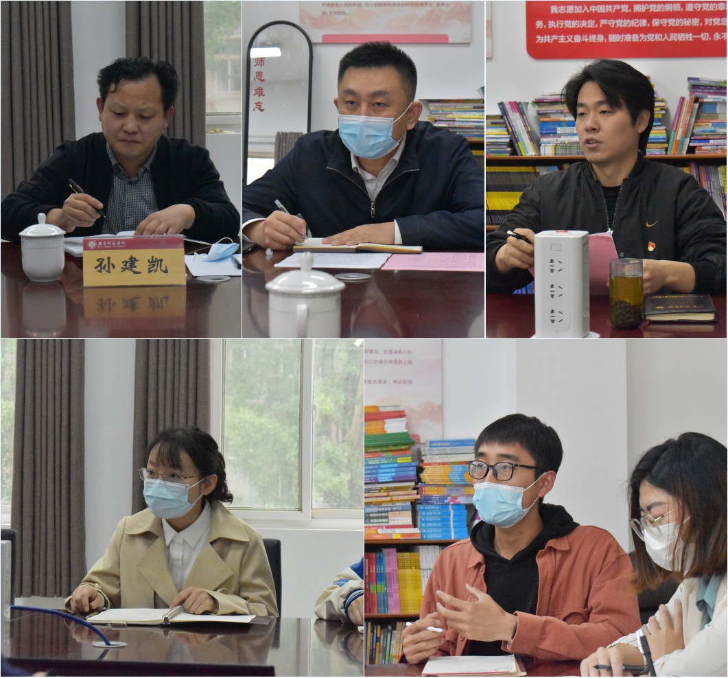 王玉华首先听取了学院团委书记、学生党支部书记牛荦关于学生党支部的工作情况汇报,并与参会的学生党员代表展开座谈交流。参会的学生党员们热情高涨,畅所欲言,交流中,同学们分别就可否开设辅修专业、二级学院设立“青马分校”以及疫情防控常态下校园安全和学生安全的管理等方面提出建议或意见,并结合疫情期间参加志愿者工作、线上学习、在线求职等方面谈了个人体会和感受。