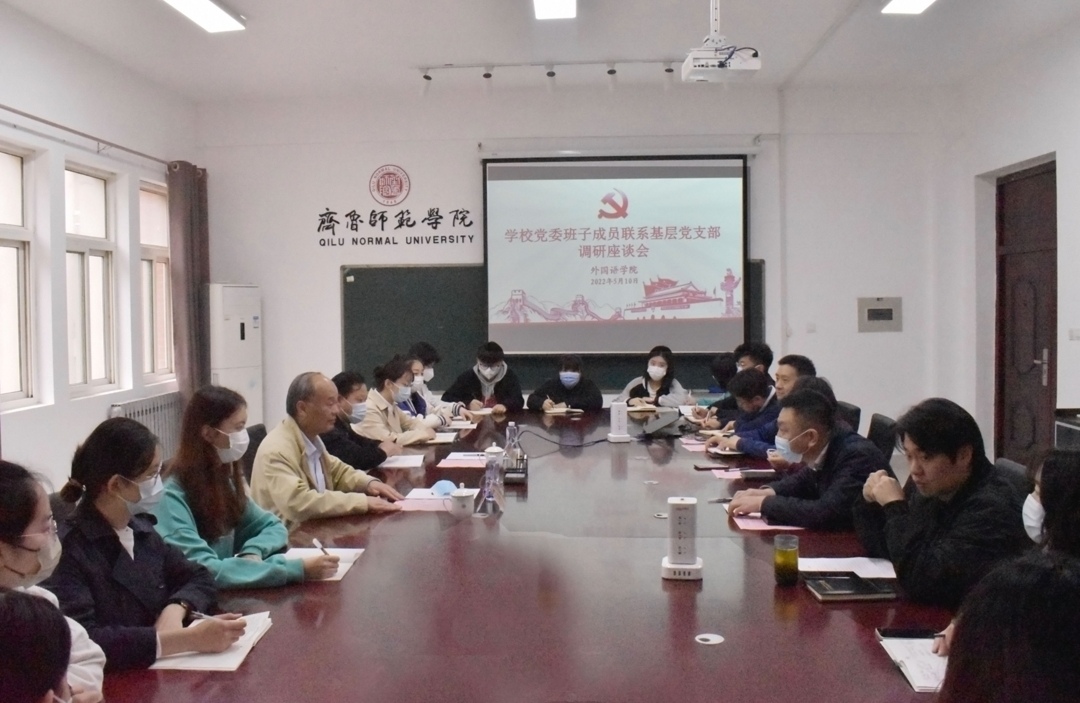 5月10日上午,校党委书记王玉华到基层党支部工作联系点外国语学院学生党支部开展调研座谈,学前教育学院党委副书记孙建凯陪同调研,外国语学院党政全体成员及学生党支部党员代表参加调研交流会。会议由外国语学院党委书记于江主持。