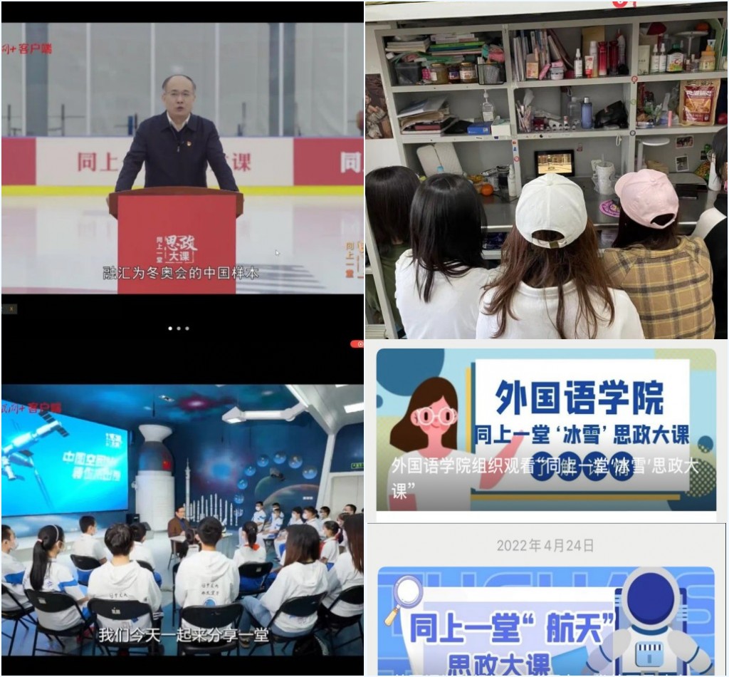 外国语学院在4月17日、24日分别组织同学们观看了“同上一堂课”冰雪思政大课堂及航天思政大课堂。同学们深入学习了冬奥精神及中国航天精神,这两期思政大课堂让同学们紧跟国家时事,传承奋斗精神,增强使命感及荣誉感。