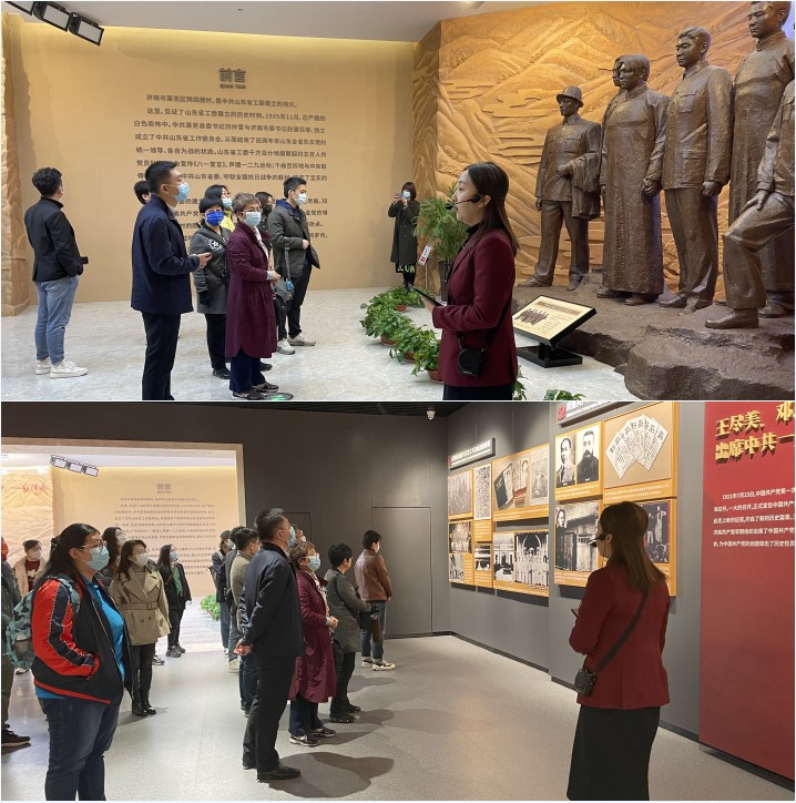 在中共山东省工委旧址党性教育基地,大家认真听取讲解,通过大量展板、史料、实物,深入了解以刘仲莹、赵健民为代表的齐鲁共产党人铁血担当、自建工委的艰难历程和不懈探索。亲身感受到当年艰苦卓绝的斗争环境,深切缅怀刘仲莹同志革命的一生,对中共山东省工委不畏艰难、勇于担当的精神有了更深刻的认识和理解。在新学期即将开始之际,外国语学院党总支通过主题党日形式,进一步坚定党员干部的理想信念,提升党性修养,进一步凝心聚力,充分发挥党员的示范带头作用。引导各党支部扎实开展主题党日活动,做到规定动作做“到位”,自选动作有“新意”,让主题党日活动成为党员学习教育的“主阵地”、思想交流的“好平台”、深化作风的“实践课”和锤炼党性的“大熔炉”,切实提高党的组织生活质量。通过此次主题党日活动,党员们接受了一次精神洗礼,进一步激发了爱党爱国之情,更加坚定理想信念。大家纷纷表示,要继续深入学习领会习近平总书记关于党史、新中国史、改革开放史、社会主义发展史的重要论述,深入学习贯彻习近平总书记关于教育的相关重要论述;继承先烈遗志,传承革命传统,充分发挥课堂育人主渠道作用,引导学生树立正确的人生观和价值观,听党话、跟党走;用实际行动践行党员的庄严承诺和先锋模范作用,把最大的热情投入到教育事业中去,为学校高质量发展贡献更大的力量。