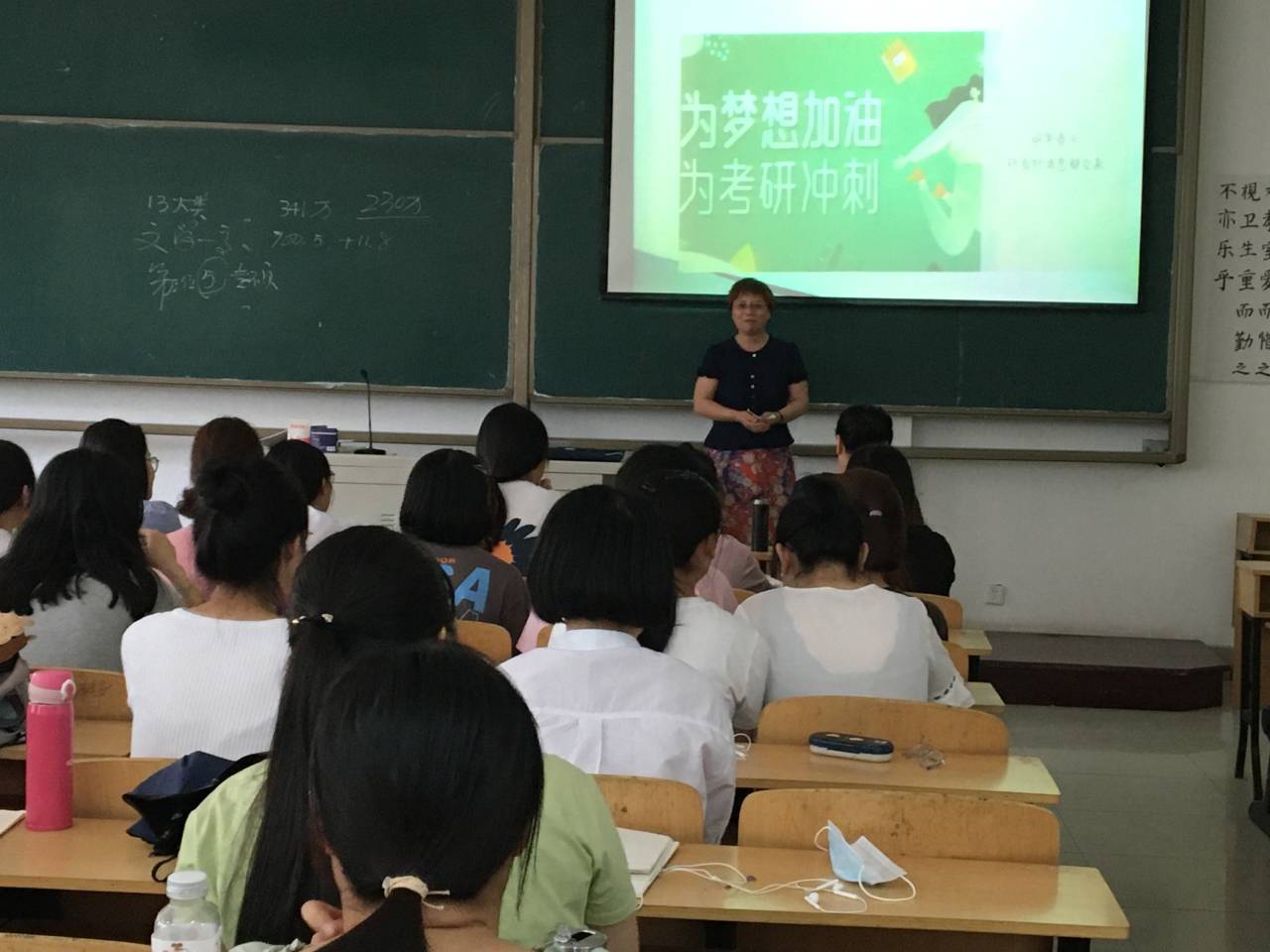 6月8日下午,在摸清学生拟报考院校和学习成绩等具体情况的基础上,外国语学院召开了2021年考研“一对一”指导活动。会议由外国语学院副院长(主持工作)宋秀葵主持,特邀马克思主义学院党总支书记王晓梅主讲,学院团总支书记牛荦、第二外语辅导教师邓晓婕、2017级英语(师范类)和2019级英语专升本班级全体返校学生参加了此次活动。