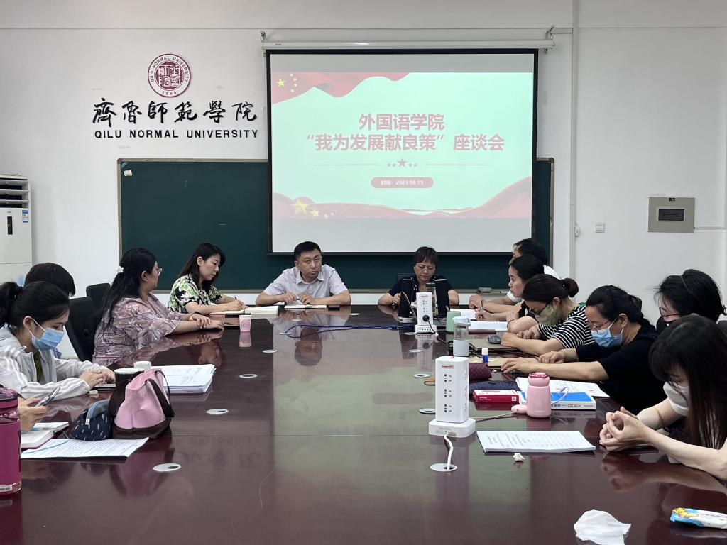 为推进学习贯彻习近平新时代中国特色社会主义思想主题教育走深走实,扎实推进深入调查研究,进一步广开言路、汇集智慧、凝聚共识,助力学校高质量发展,6月16日下午外国语学院召开“我为发展献良策”教师座谈会,会议由学院党委书记于江主持。