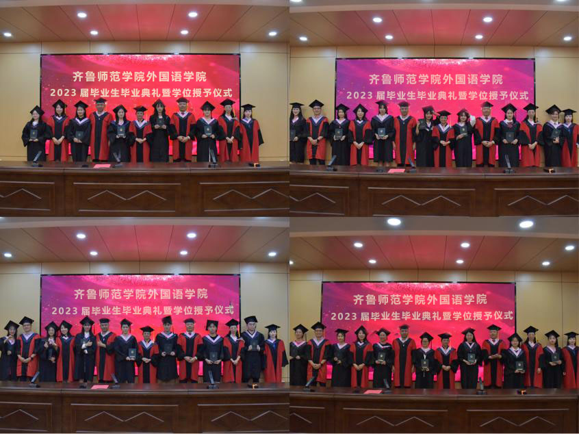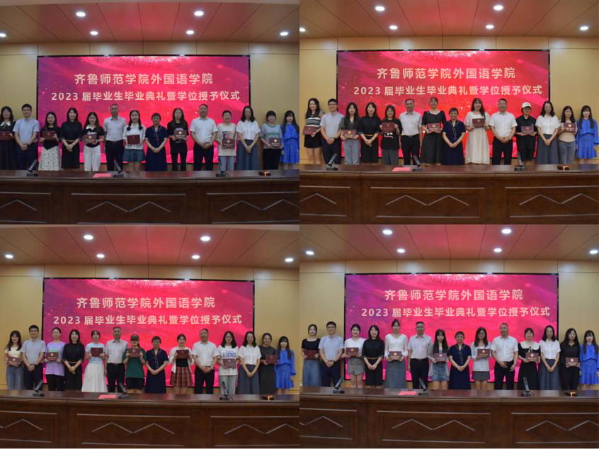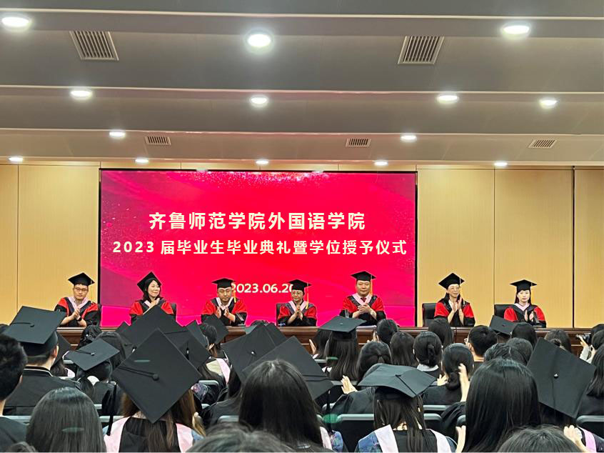 6月15日,外国语学院于章丘校区2教A111举行2023届毕业生毕业典礼暨学位授予仪式。外国语学院院长宋秀葵、党委书记于江、副院长谢士金、党委副书记迟英娟、团总书记牛荦、翻译教研室主任冯晓凌、商务英语教研室主任石磊出席毕业典礼,学院教师代表及全体毕业生参加典礼,典礼由学院团总支书记牛荦主持。