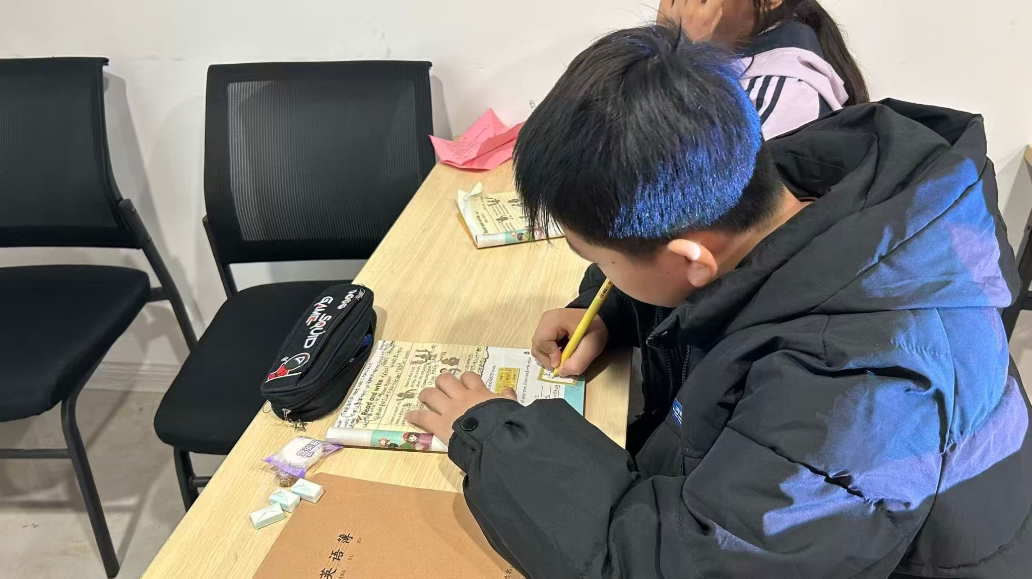休息结束,王东正带来的趣味拓展活动紧接着开展。二年级的小朋友们迎来了趣味绘画和有奖问答。绘画环节,孩子们拿起画笔,尽情发挥想象力。有的小朋友画了自己背着书包、把书本和铅笔盒“put away”的场景,色彩鲜艳,充满童真;有的则画了蓝天白云下,红、蓝两色的花朵盛开的模样。在有奖问答时,对于当天学习的“work”“time”“book”“pencil”“blue”“red”“put…away”等单词和词组,小朋友们热情高涨,纷纷举手抢答。“老师,我知道!‘put away’是把……收起来!”一个小男孩站起来,大声且准确地回答。答对的小朋友都获得了小贴纸作为奖励,拿到奖励的孩子脸上都洋溢着自豪的笑容,没答对的也不气馁,专注地听着正确答案,准备在接下来的问答中一展身手。