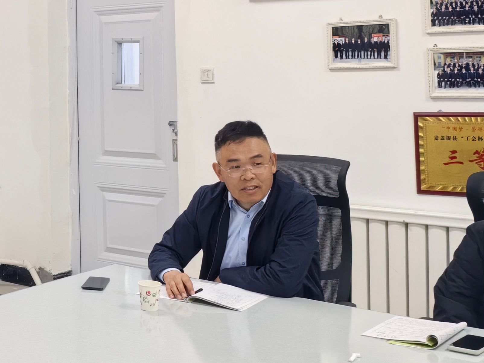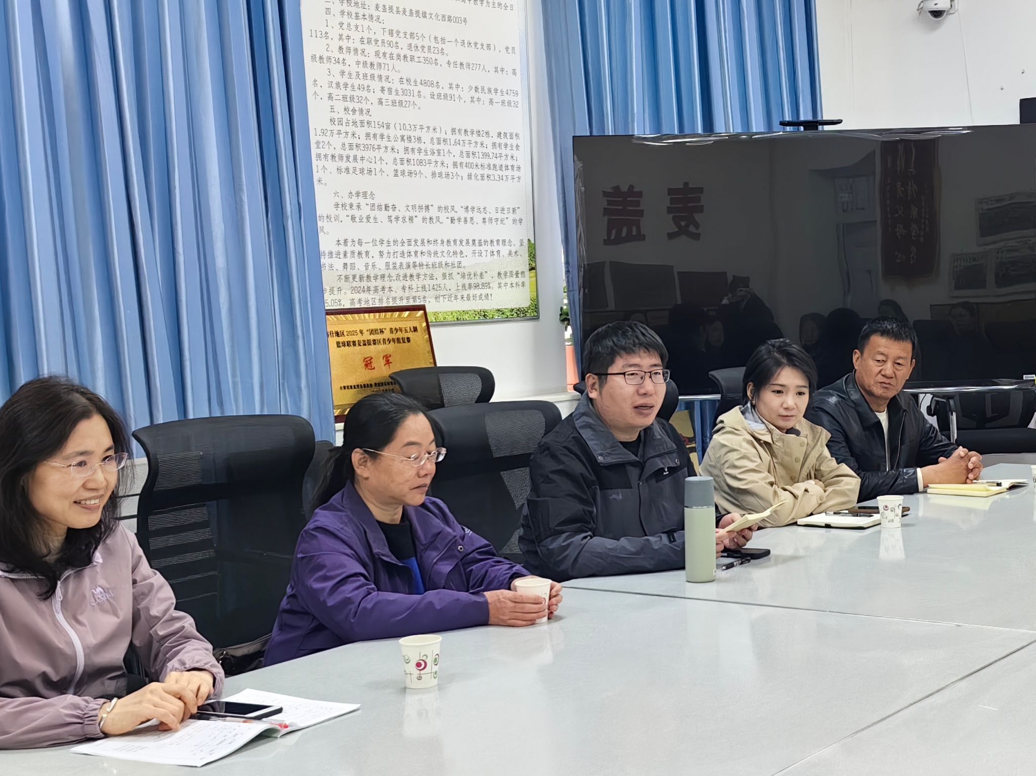下午,王冰新和带队老师继续听评课,之后与麦盖提县实验中学党组书记南长龙座谈,并参观了音乐特长班。