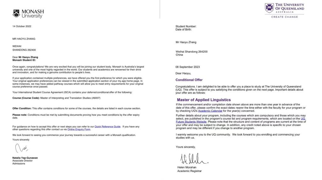 星光不负赶路人,美好的画卷展现了光明的前程;时光不负考研人,胜利的号角回响在外院的耳畔。近日,我院19级翻译班学子张皓予,考取莫纳什大学(口笔译研究硕士)和昆士兰大学(英语教学硕士)两所世界名校的硕士研究生。据最新QS世界大学排名,莫纳什大学42名、昆士兰大学43名,均在世界前五十之列。