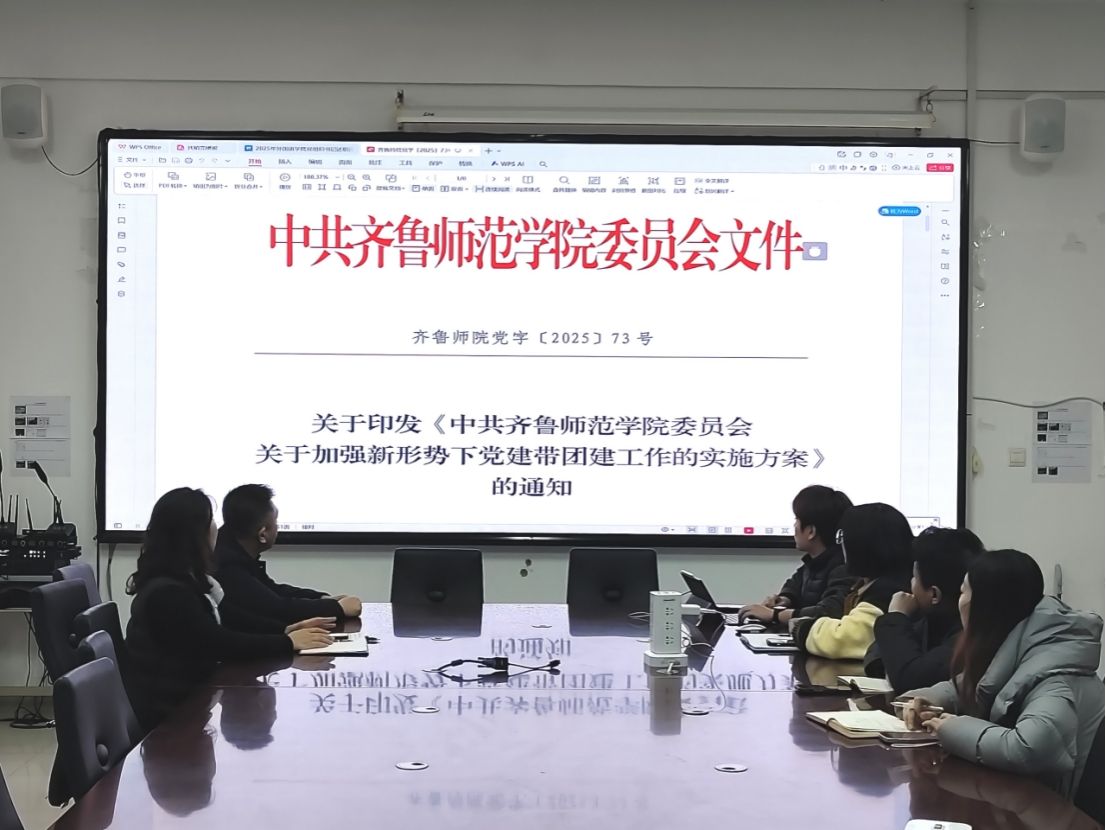 会上,迟英娟传达了学校学生工作例会核心精神与要求,结合学院实际细化部署近期和寒假重点工作任务,强调要聚焦学生成长成才关键环节,推动各项工作落地。随后,全体辅导员集中学习了《中共齐鲁师范学院委员会关于加强新形势下党建带团建工作的实施方案》和《齐鲁师范学院学生社团建设管理办法(2026年修订)》,重点解读了党建带团建的强化路径、思想引领创新方法、党团育人衔接要求,以及学生社团注册登记、指导教师职责、活动管理等关键环节的规范标准,为工作开展提供明确指引。