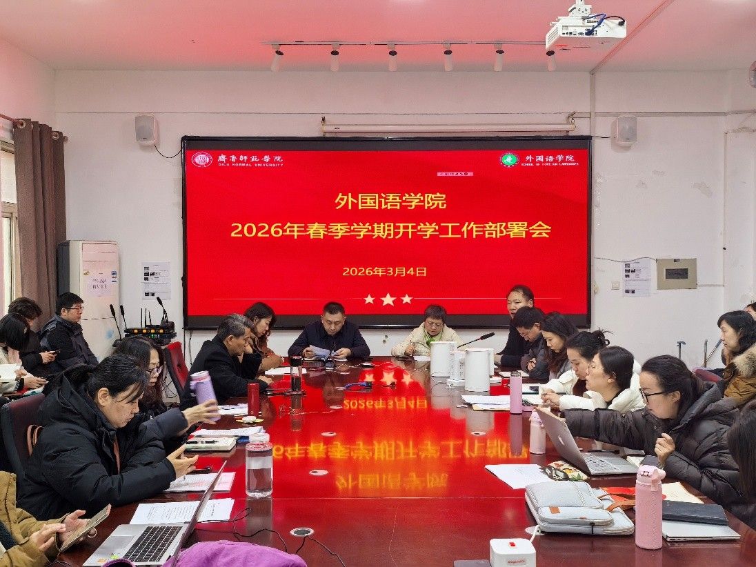 为统筹推进新学期各项工作,确保教学科研工作平稳有序开展,3月4日下午14:00,外国语学院在会议室召开2026年春季学期开学工作部署会。学院领导班子成员及全体教师参加会议。