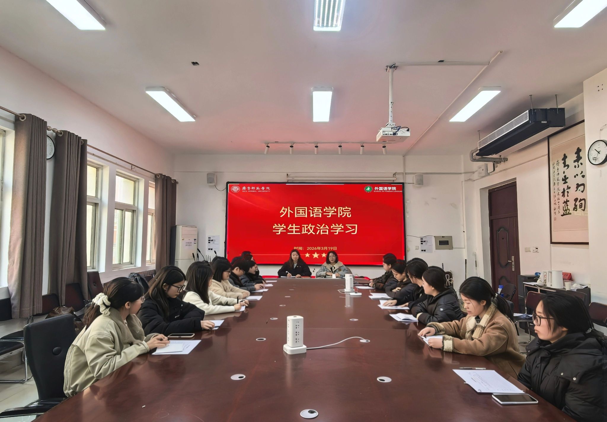 为深入学习贯彻 2026 年全国两会精神及“十五五”规划部署要求,3月19日,外国语学院开展“深学细悟强信念,以语践知勇担当”学生政治理论学习会,各团组织同步以 “第一议题” 形式学习中共中央办公厅印发的《关于深入开展学雷锋活动的意见》,外国语学院全体学生参与活动,在学思践悟中坚定理想信念,在凝心聚力中勇担时代使命。