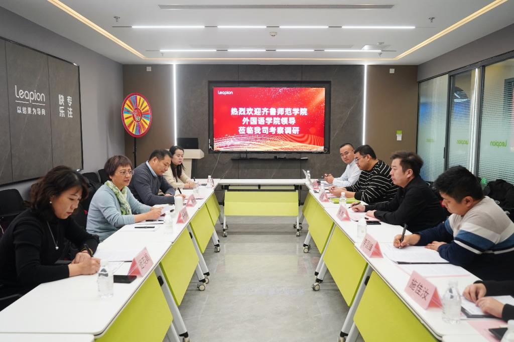 会上,滨河商务中心项目负责人江峰对外国语学院一行的到来表示热烈欢迎,并对此次参加调研的企业进行了介绍。山东领品机械科技有限公司总经理张杰,中地国际贸易(山东)有限公司代表施汝佳、张坤,济南泉世界商业管理有限公司代表王浩,分别介绍了公司的运营情况、主营业务,同时表达了对于英语类专业人才的迫切需求。宋秀葵表示,此次深入企业调研,一方面是深化供需对接,了解企业对人才的真实需求变化,真正做到企业与人才的无缝对接;另一方面,期望能与企业建立更深层次的合作,并邀请企业来学院开展专场招聘宣讲会,为学生们提供更多的实习机会,为毕业生提供更多的岗位资源。随后,双方就校企合作与人才订单培养、实习实训、毕业生就业等方面进行了深入交流。