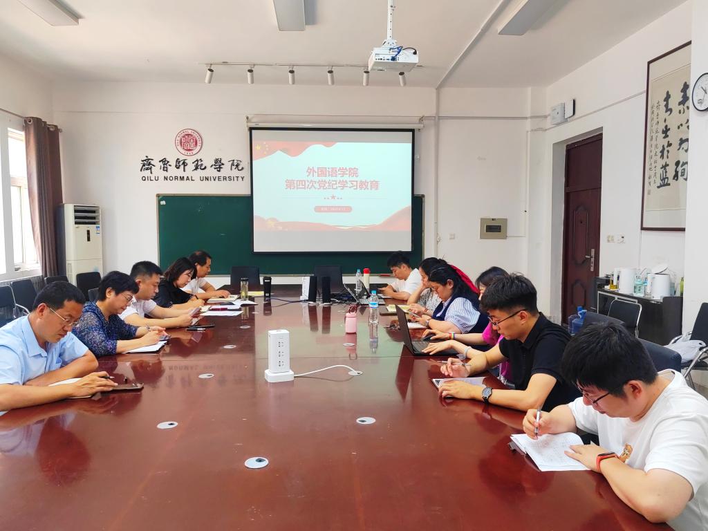 为持续深入开展党纪学习教育,进一步强化教育提醒和警示震慑,严明纪律要求, 6月17日上午,外国语学院党委在学院会议室开展党纪学习教育第四次集体学习。学院党委书记于江主持会议,学院全体处科级干部参加学习。