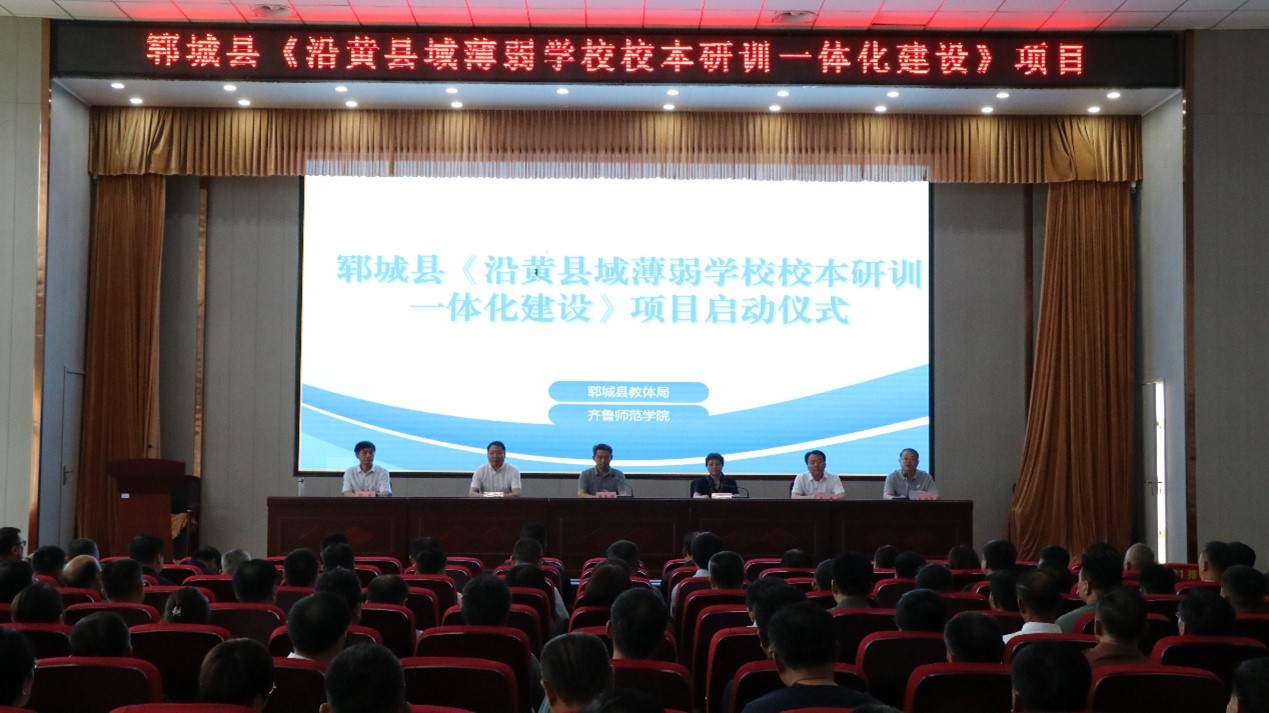 6月27日,齐鲁师范学院和郓城县教体局联合举办“沿黄县域薄弱学校校本研训一体化建设”项目启动仪式,齐鲁师范学院外国语学院院长宋秀葵,齐鲁师范学院外国语学院副院长谢士金,教育部“国培计划”培训专家、齐鲁师范学院外国语学院教授梁承锋,教育部“国培计划”中小学领航工程名校长、济南市历城二中教育集团义轩小学党支部书记、校长范勇,郓城县教体局党组书记、局长王涛,全县各学校校长、业务校长参加会议。