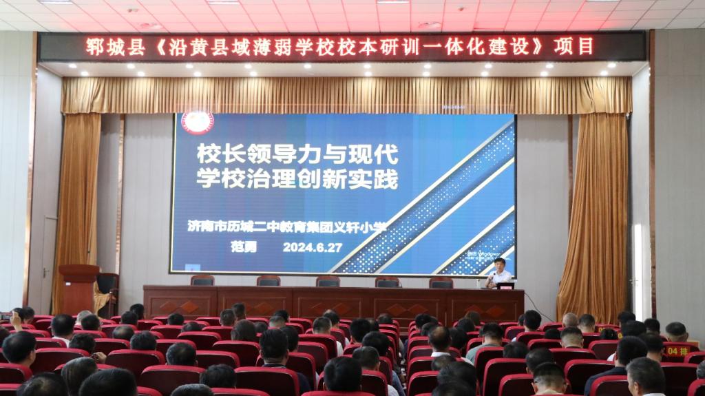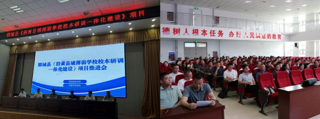 6月27日,齐鲁师范学院和郓城县教体局联合举办“沿黄县域薄弱学校校本研训一体化建设”项目推进会。齐鲁师范学院外国语学院院长宋秀葵,齐鲁师范学院外国语学院副院长谢士金,教育部“国培计划”培训专家、齐鲁师范学院外国语学院教授梁承锋,教育部“国培计划”中小学领航工程名校长、济南市历城二中教育集团义轩小学党支部书记、校长范勇,郓城县教体局党组书记、局长王涛,全县各学校校长、业务校长参加会议。