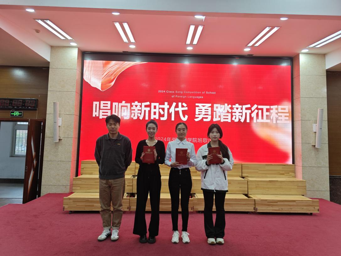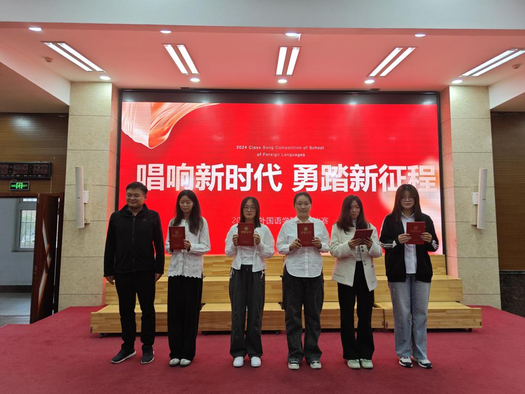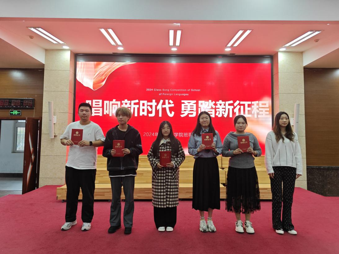 此次班歌比赛不仅为外国语学院的同学们搭建了一个展示才华与交流情感的舞台,更是他们以实际行动响应时代号召,用自己的方式歌颂着属于自己和伟大祖国的壮丽篇章,充分展现了新时代大学生勇于担当、爱国奋进的独特风采。在新时代的春风中,我们手挽手、肩并肩,勇敢踏上实现中华民族伟大复兴的新征程。让我们以青春为笔、汗水为墨,共同谱写一曲更加壮丽辉煌的时代赞歌!