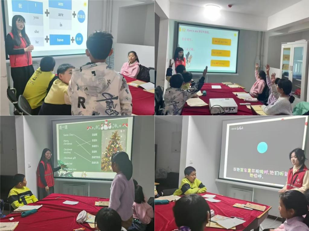 最后一个环节,我们以一段精彩的圣诞老人给孩子们送礼物的动画作为开场。动画中,圣诞老人坐着驯鹿拉的雪橇,在漫天飞舞的雪花中穿梭于世界各地。那奇幻的场景瞬间吸引了孩子们的眼球,让他们沉浸其中。动画结束后,我们趁热打铁,提出了一些问题,鼓励孩子们用英文作答。他们的回答虽然稚嫩,却充满了自信与勇气,让我们看到了他们对英语表达能力的提升。