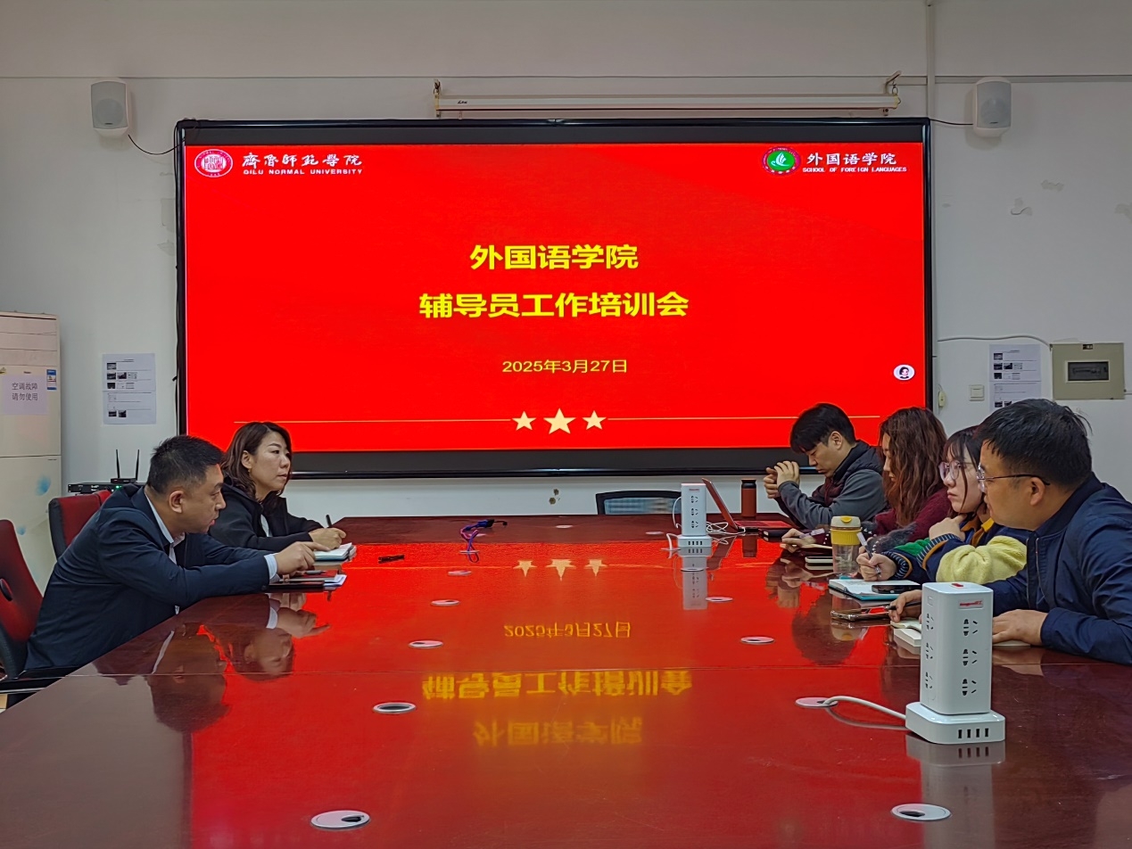 为进一步提升辅导员队伍的专业素养和工作能力,扎实做好学生管理工作,3月27日下午,外国语学院在学院会议室召开了辅导员工作培训会。会议由学院党委书记于江主持,全体辅导员参加了此次培训。