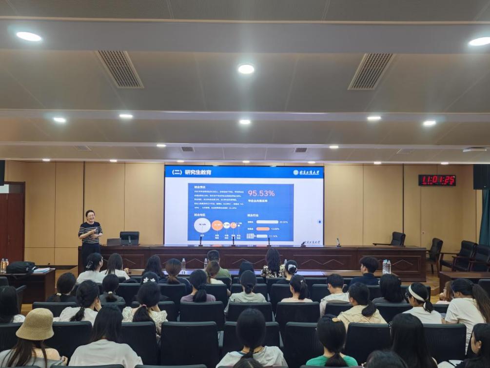 为进一步提升考研指导服务质量,助力学生明晰招生动态、科学规划学业发展路径,5月20日,外国语学院在2教A111举办北京工商大学语言与传播学院硕士研究生招生宣讲会。北京工商大学语言与传播学院副院长史岩林、商务英语系教师田莉、国际法商英语专业在读研究生张冬雪;外国语学院党委书记于江、党委副书记迟英娟、商务英语教研室主任石磊,以及学院部分学生共同参与此次活动。