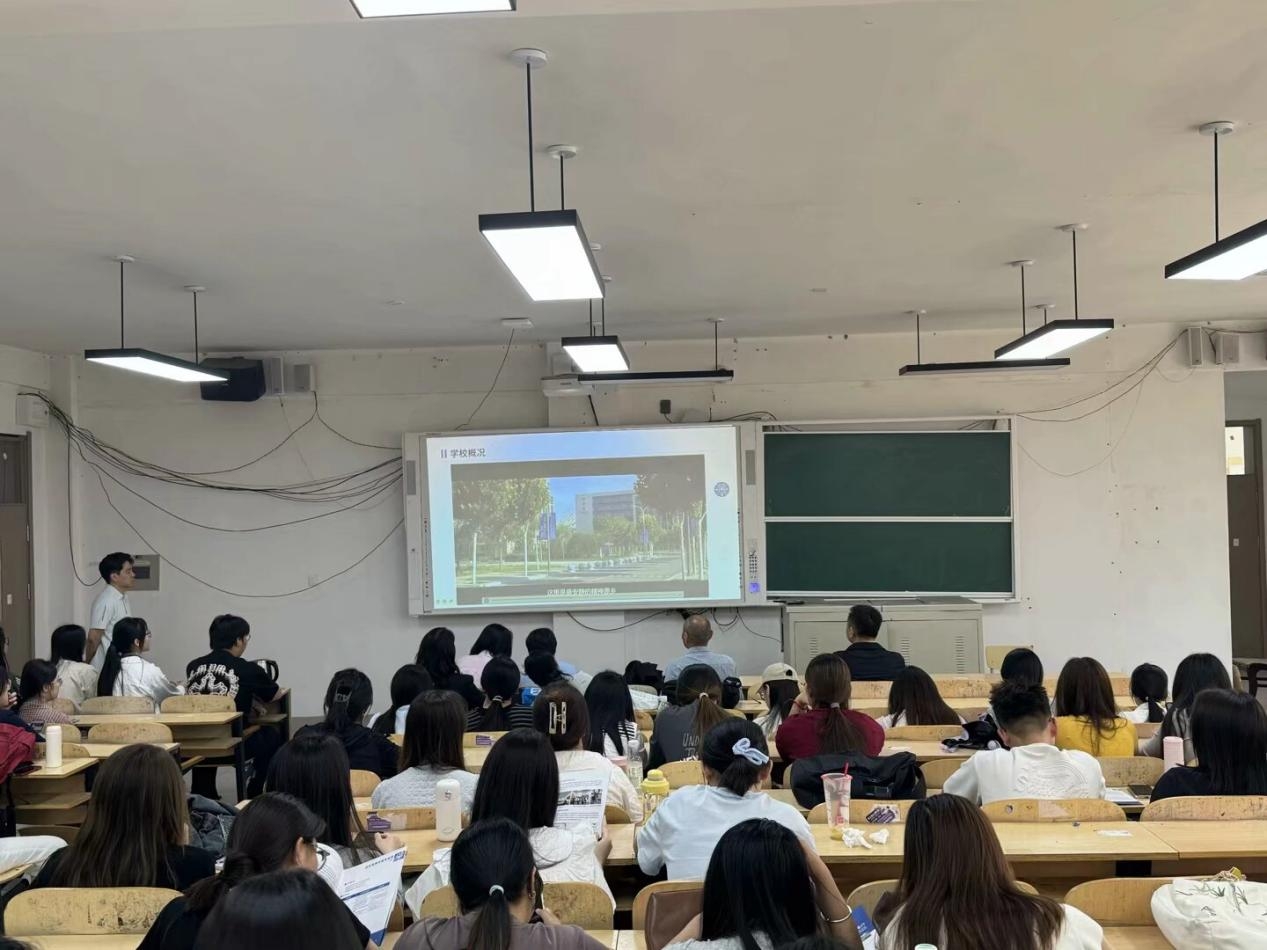 宋秀葵首先向北京信息科技大学外国语学院朱安博院长一行的到来表示衷心的感谢和热烈的欢迎。朱安博院长就北京信息科技大学的发展历史、其外国语学院建设基本情况以及学院2025年的硕士研究生招收情况做了简单介绍;郑美玲副院长全方位地介绍了学院的师资队伍、科研优势、培养目标、课程学分体系以及报考优势等关键信息,帮助同学们科学择校。此外,曹培会老师还深入讲解备考指南,结合本校特色提出了切实可行的备考建议,鼓励同学们紧跟科技动态。同时他分享了丰富多彩的校园生活,让同学们对未来的研究生生活充满期待。