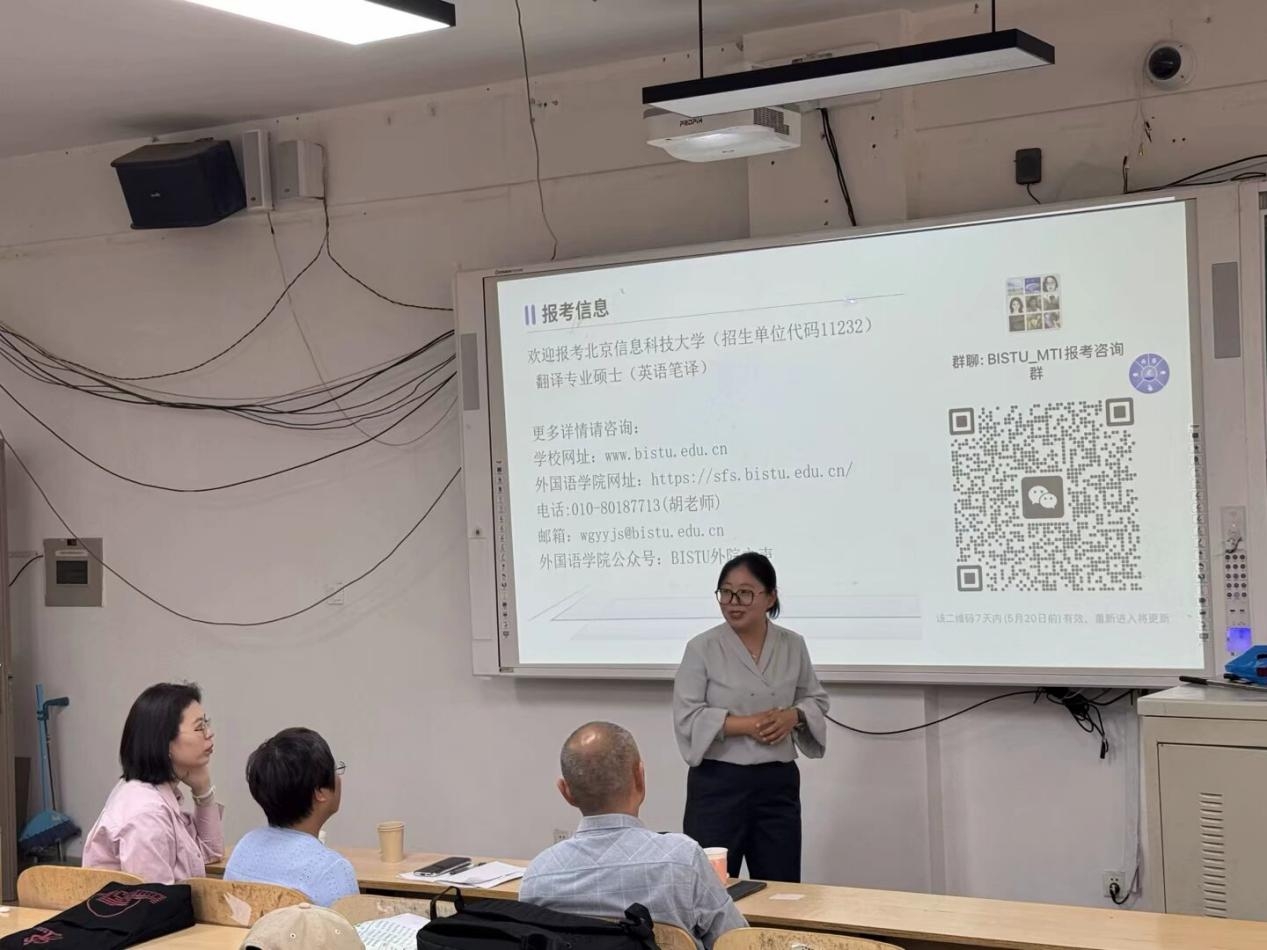 此次宣讲会的举办,不仅为有考研意向的同学提供了全面且权威的招生资讯,更推动了两院在人才培养、学术交流等领域的深度合作,为培养高素质外语人才奠定了坚实基础。相信在未来的日子里,会有更多的我院学子以北京信息科技大学为目标,努力拼搏,向着自己的理想学府奋勇前进。