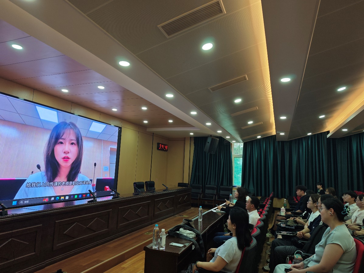 宣讲会上,首先播放了我院2024届翻译专业毕业生、现就读于成都理工大学外国语学院英语口译专业学生徐子钦录制的视频。她首先表达了对母校培养的感谢之情,然后分享了自己在成都理工大学读研期间的学习、生活和感受,并欢迎师弟师妹们报考成都理工大学。