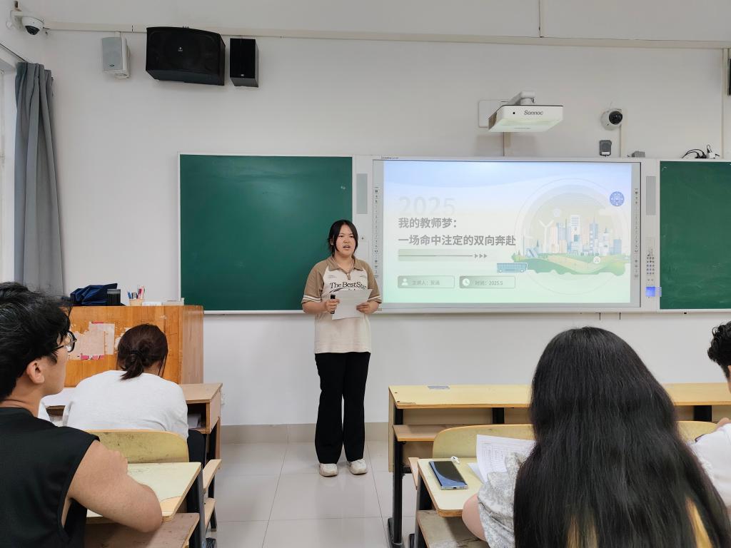 在简要介绍规则后,“我的教师梦”演讲比赛复赛正式拉开帷幕。来自不同学院的参赛选手依次登台,他们怀着赤诚之心,饱含诚恳情感,生动地诠释了“我的教师梦”这一主题。有的同学满怀真挚,讲述自己受身为教师的母亲影响,在心底种下教育种子的故事;有的同学心怀愿景,希望凭借教师职业的力量传播音乐,让音乐影响更多人;还有同学动情分享自己在支教过程中,被孩子们求知的眼神所打动,从而坚定投身教育事业决心的经历。