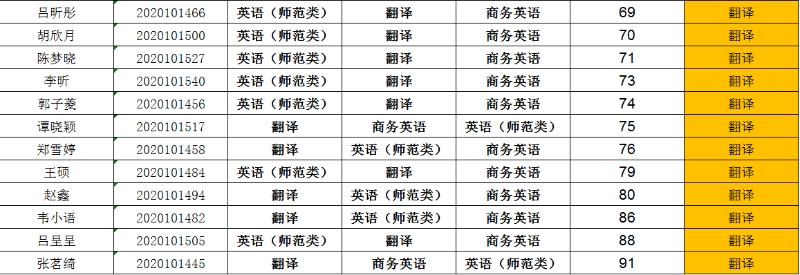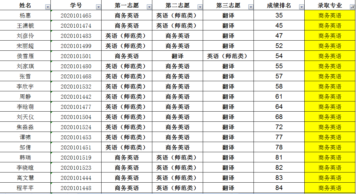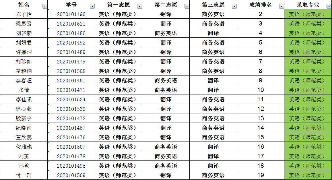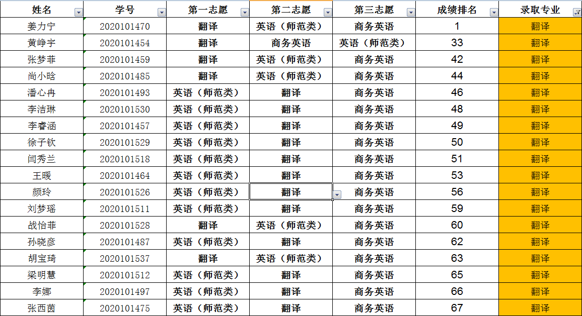 按照《外国语学院2020级本科大类招生专业分流工作实施办法》,在尊重学生个性发展、学生自愿申请的基础上,综合参考入学后的学业成绩,在所属专业类内对我院2020级本科大类招生学生进行专业分流。现将分流结果公示如下,公示期为6月10日至6月11日。