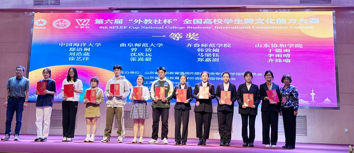 9月24日,第六届“外教社杯”全国高校学生跨文化能力大赛山东赛区决赛在山东理工大学落下帷幕,我校代表队同来自山东大学、中国海洋大学等省内高校的51支队伍同台竞技,荣获山东省决赛一等奖。