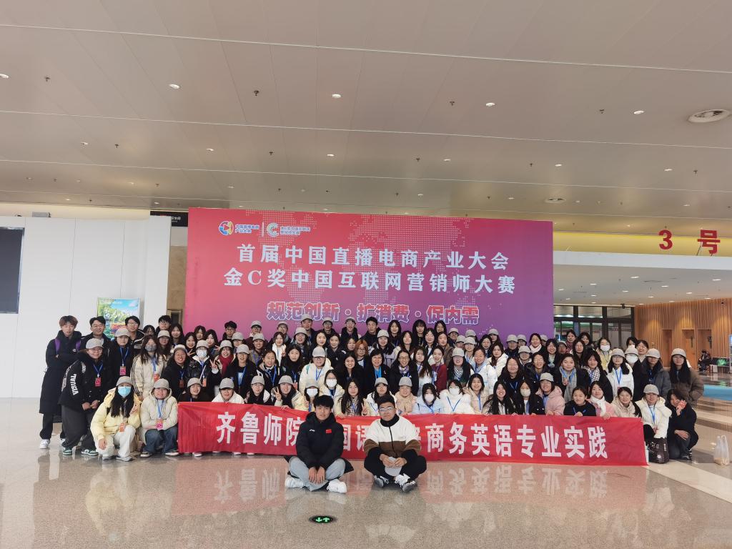 12月15日-16日,外国语学院商务英语专业2023级学生和2020、2021级学生代表在商务英语教研室老师们的带领下,前往山东国际会展中心参加首届中国直播电商产业大会。大会由中国电子商会、山东广播电视台、济南日报报业集团、半岛都市报社联合打造,同步举办中国直播电商产业高峰论坛、金C奖中国互联网营销师大赛。