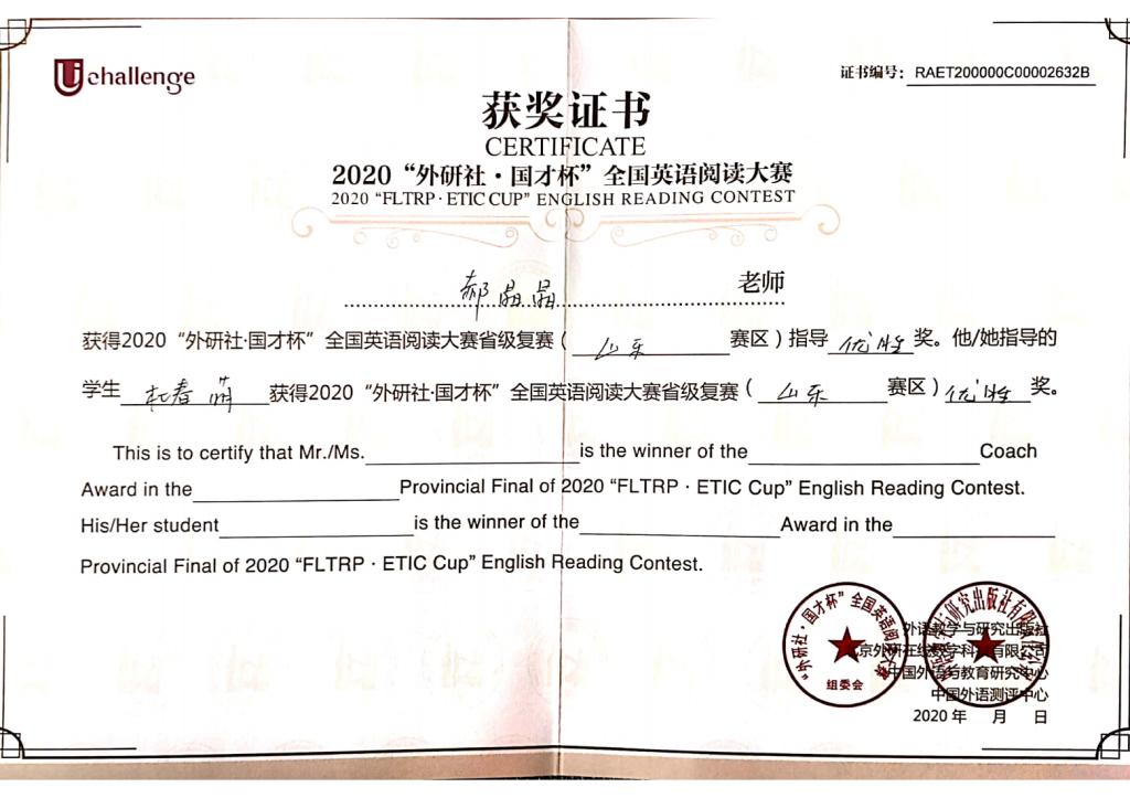 项目名称:2020“外研社 国才杯”全国英语阅读大赛省级复赛