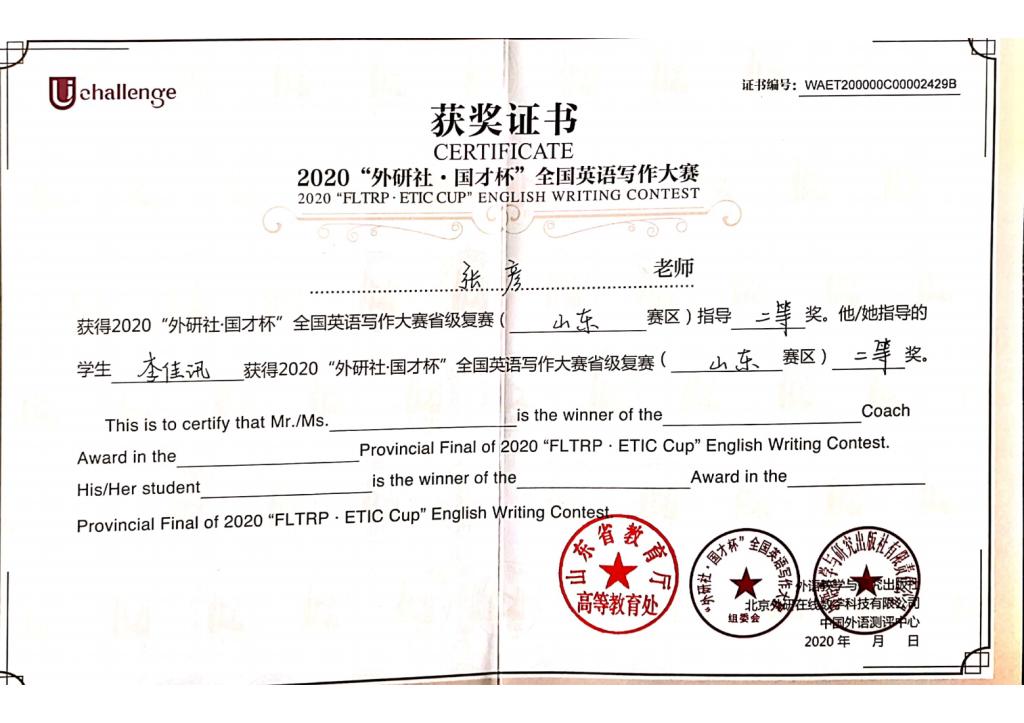 项目名称:2020“外研社 国才杯”全国英语写作大赛省级复赛