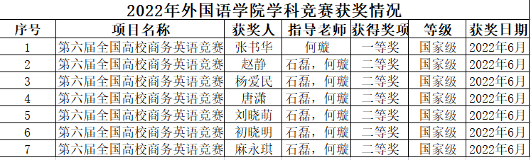 2022年外国语学院学科竞赛获奖情况