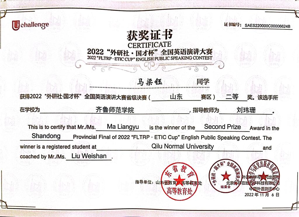 项目名称:2022外研社国才杯全国英语演讲大赛省级决赛