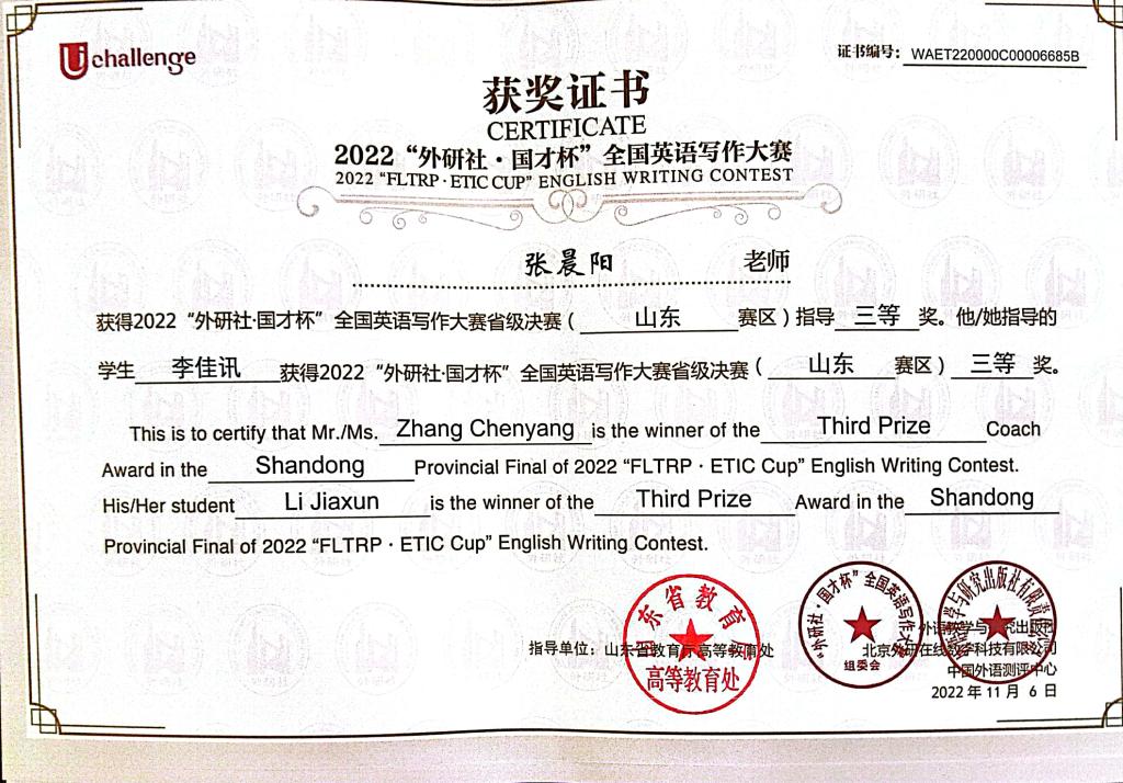 项目名称:2022外研社国才杯全国英语写作大赛省级决赛