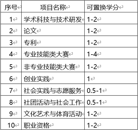 自主学习与创新创业实践环节包含各类创新活动、创业活动、各级各类竞赛等。根据《齐鲁师范学院关于进一步加强学生第二课堂建设的实施意见》(齐鲁师院政学字〔2017〕12号),鼓励学生利用第二课堂自主学习,开展创新创业实践活动。各学院充分利用课余时间,根据专业情况设置相应实践项目(如下表),项目要具体化、可操作。学生持相关的有效证明材料提出申请,经所在学院自行认定,可获得创新创业实践学分,并可置换专业选修课和其他实践教学环节学分,累计不超过10学分。可置换学分的课程和具体置换办法须在培养方案中作出明确规定。