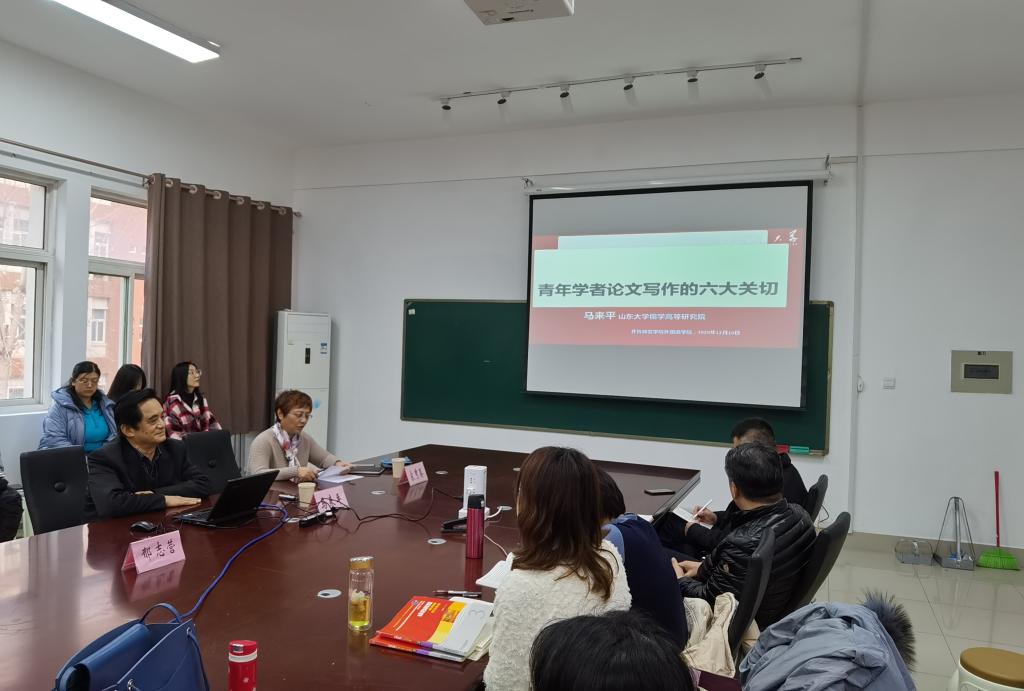 12月10日下午,外国语学院特邀山东大学儒学高等研究院的马来平教授作了题为“青年学者论文写作的六大关切”的专题报告。报告由外国语学院副院长(主持工作)宋秀葵主持,学院全体教师共同聆听了本次报告。