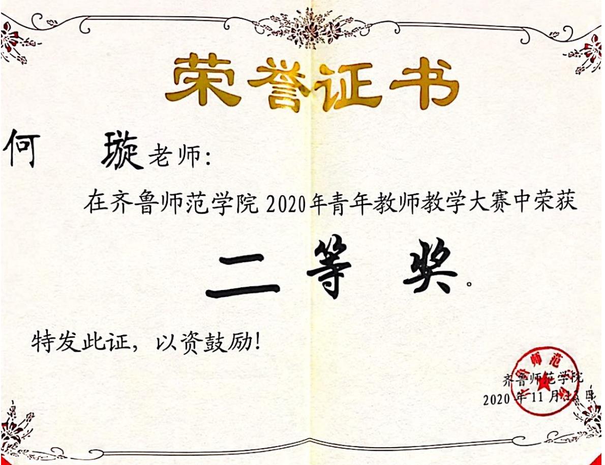青年教师的成长是学校发展的未来和希望,青年教师是教师队伍中的一支重要力量,也是实现教师队伍可持续发展的关键环节。为加强我校青年教师队伍建设,引导青年教师进一步强化立德树人根本理念,锤炼教学基本功,提升青年教师教学能力和水平,促进青年教师创新教学方法,贯彻能力范式教学改革,全面提升我校人才培养质量,齐鲁师范学院2020年青年教师教学大赛于11月13日在章丘校区举行,我院商务英语教研室教师何璇代表学院参赛,荣获二等奖。