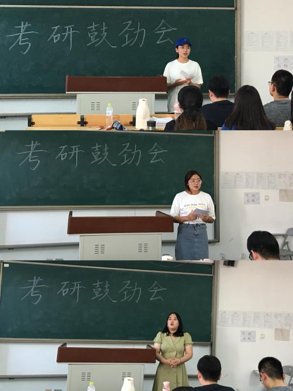 本次会议共有三项议程,分别为学生代表讲述近期备考状况,贾国斌讲解本次“鼓劲会”的目的、做法及要达到的效果,魏忠堂、齐龙飞对考研学生备考面临的问题进行现场咨询指导。