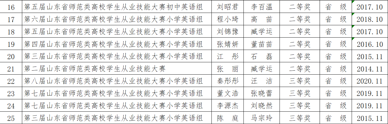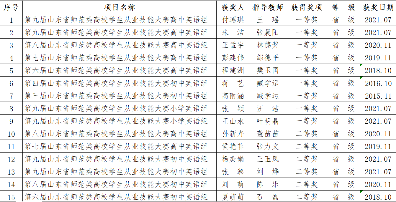 2015年至今外国语学院学生从业技能大赛获奖情况(省级以上)
