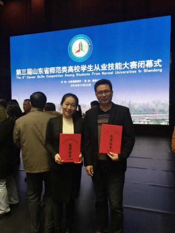 此次大赛由说课、模拟讲课、答辩三个环节组成。外国语学院准备充分,赛前通过班级、年级、学院、学校的层层比赛选拔,推举2012级的高雨涵和江彤两名同学参加。同时山东省教育厅随机抽取2012级的陈庭、唐远志两名同学作为盲抽选手参加比赛。我院对此次比赛高度重视,派出了四名指导老师一对一地对四名选手分别进行指导。功夫不负有心人,通过赛前各自指导教师的积极耐心辅导,四位同学过五关斩六将,取得了良好的成绩。其中高雨涵同学获得了全省一等奖第二名的好成绩,臧学运老师荣获“优秀指导教师”荣誉称号。