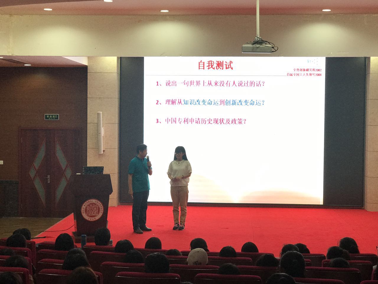 报告中,许教授结合自己教学实践以及长期从事发明专利创新的经验,就在大学生中如何开展创新思维、国内外现状和研究意义进行了阐述,并利用大量的真实案例系统的阐述了“人人会创新、事事该创新、时时可创新、处处能创新、创新有法、法无定法、专利申报、想到做到”等一系列观点,对如何发现身边的创意点,以及如何将创新思维运用于现实生活进行了具体生动的讲解。整场讲座充满了创新元素,使同学们体验到了一场精彩的创新报告。