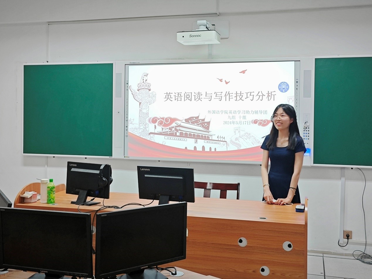 为促进大学生成长成才,提高英语学习兴趣,提升英语交流水平,为同学们提供英语交流学习平台,解答英语学习难题,培养同学们的自主学习能力,5月17日19:00,外国语学院在二教B212举行党员英语帮扶“微光英语角”线下答疑活动第三期。本次活动以”英语阅读与写作技巧分享”为主题,由外国语学院帮扶小组九组、十组成员为同学们分享,23级部分同学参加此次活动,本次活动由辅导团成员项茂男主持。