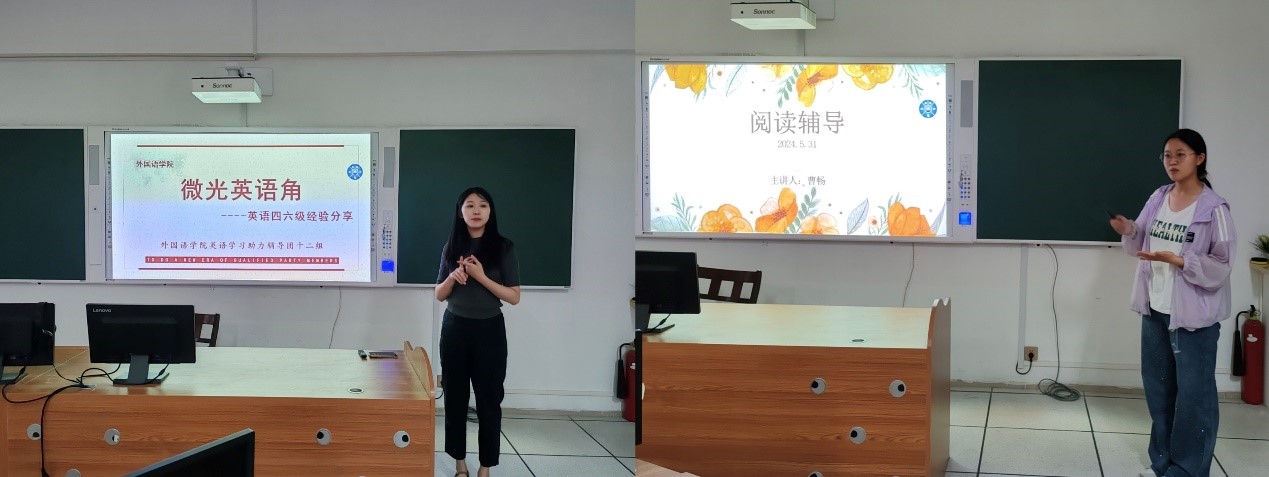 为促进大学生成长成才,提高英语学习兴趣,为同学们提供英语交流学习平台,5月31日晚上,外国语学院在二教B212举行党员英语帮扶“微光英语角”线下答疑活动第四期。本次活动以英语四六级考试技巧分享为主题,由外国语学院帮扶小组十二组成员为同学们分享,23级部分同学参加此次活动,本次活动由辅导团成员秦夏楠主持。