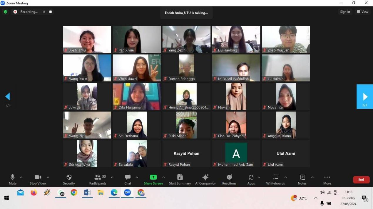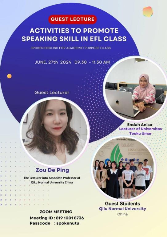 6月27日,外国语学院教师邹德平应邀为印度尼西亚Teuku Umar大学举办了主题为“提升EFL课堂口语能力的活动”的在线讲座。73位印尼师生参加,外国语学院学生陈嘉伟等作为特邀客座嘉宾参加了讲座后的线上交流。