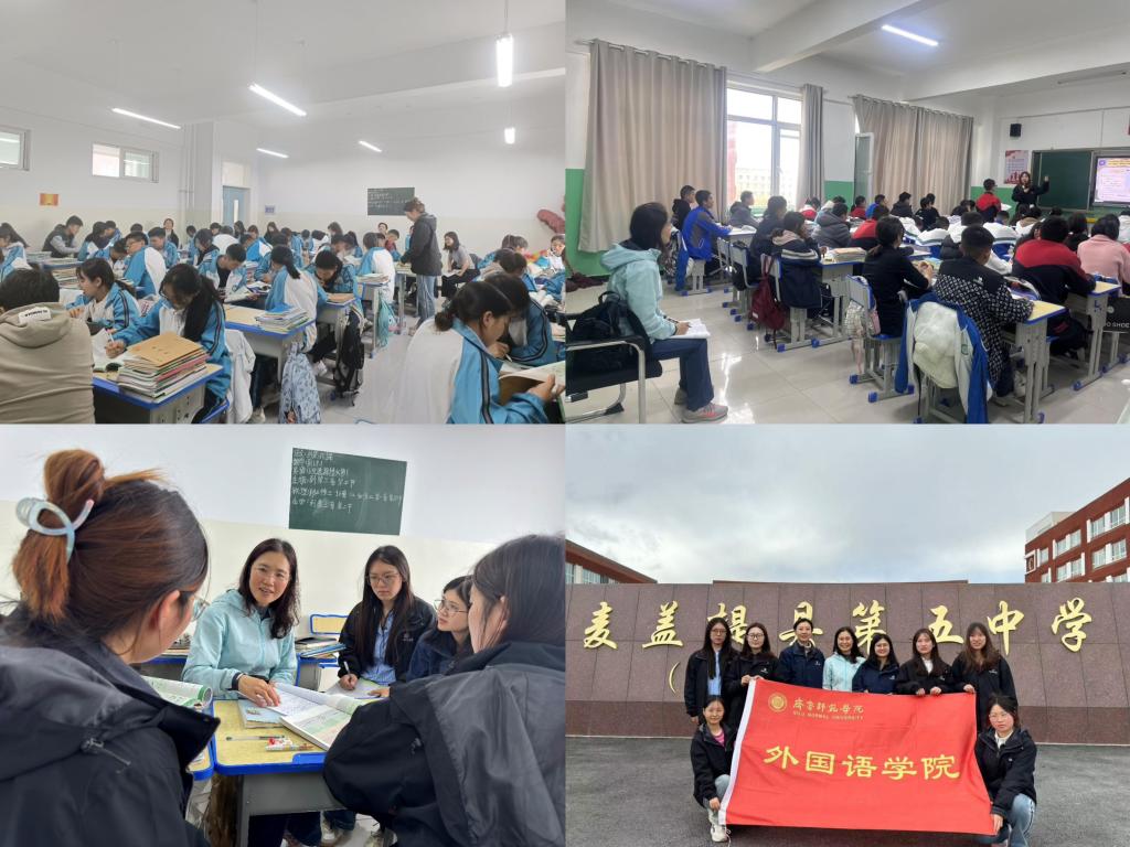 为全面了解实习支教学生的实习情况,10月28日齐鲁师范学院第六批援疆实习支教带队教师赵青、汪洁走访了麦盖提县第五中学,与学校高中部校长努尔艾力、初中部教务处主任魏芬及实习支教学生展开座谈交流。
