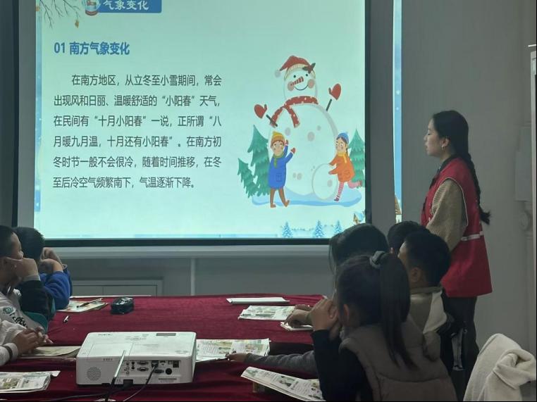 课堂接近尾声时,我们播放了一段关于立冬的视频,并详细讲解了与立冬相关的英语知识和习俗。孩子们听得如痴如醉,纷纷举手回答问题。他们不仅学会了立冬的英文单词“The Start of Winter”,还深入了解了立冬的传统习俗以及背后的文化内涵。那一刻,我们仿佛看到了知识和文化的桥梁在孩子们心中悄然架起。课后,我们与孩子们一起回顾了本节课的学习内容,他们都能准确无误地复述出所学词汇和句式。