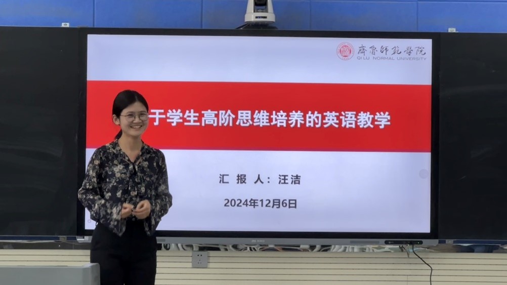 汪洁主讲了一场题为“基于学生高阶思维培养的英语教学”的专题讲座,内容深刻且富有启发性。她从教育的本质出发,深刻剖析了新时代教育工作者所面临的挑战与机遇,并强调教育工作者需紧跟现代教育技术的发展步伐,运用新技术、新媒体等现代教学手段,以创新的理念和方式提高教学效率,激发学生的思维活力,培养其高阶思维能力。