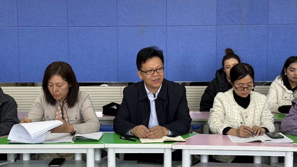 随后,王冰新逐一介绍了出席活动的领导及嘉宾。常德义在讲话中强调了当地英语教育改革的重要性,并鼓励老师们从思想层面开始转变,进而推动课堂的变革。他高度赞扬了齐鲁师范学院第六批援疆实习支教团远离家乡、投身边疆教育事业的奉献精神,并期待双方能够携手共进,为提升当地英语教学水平和课堂建设的完善贡献力量。