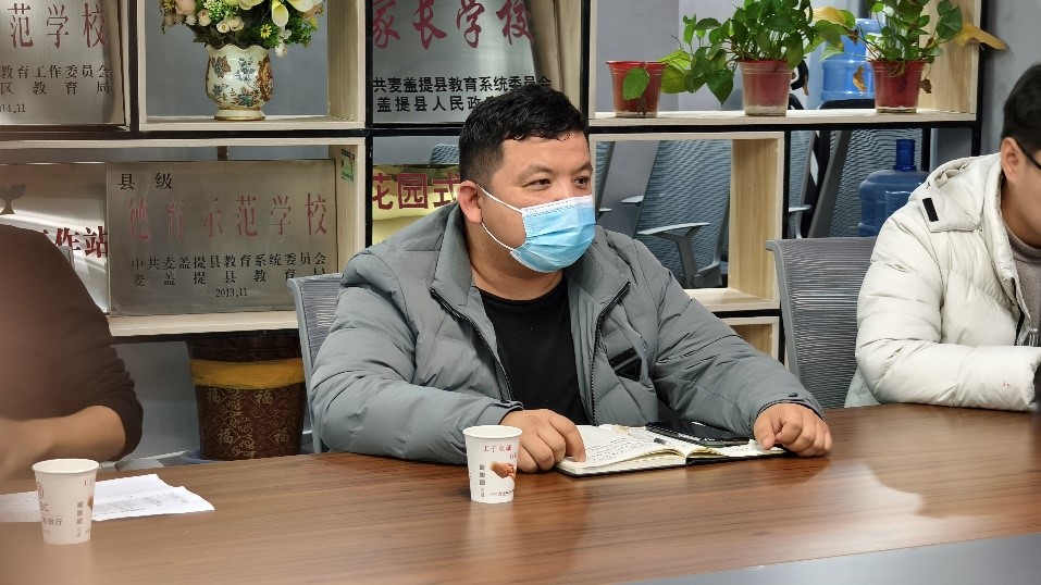 课后,座谈交流随即展开。座谈会由麦盖提县第二中学校长助理杨富全主持,宋秀葵、赵青、汪洁与校长西艾力•吾思曼、外国语学院实习支教学生参加座谈。
