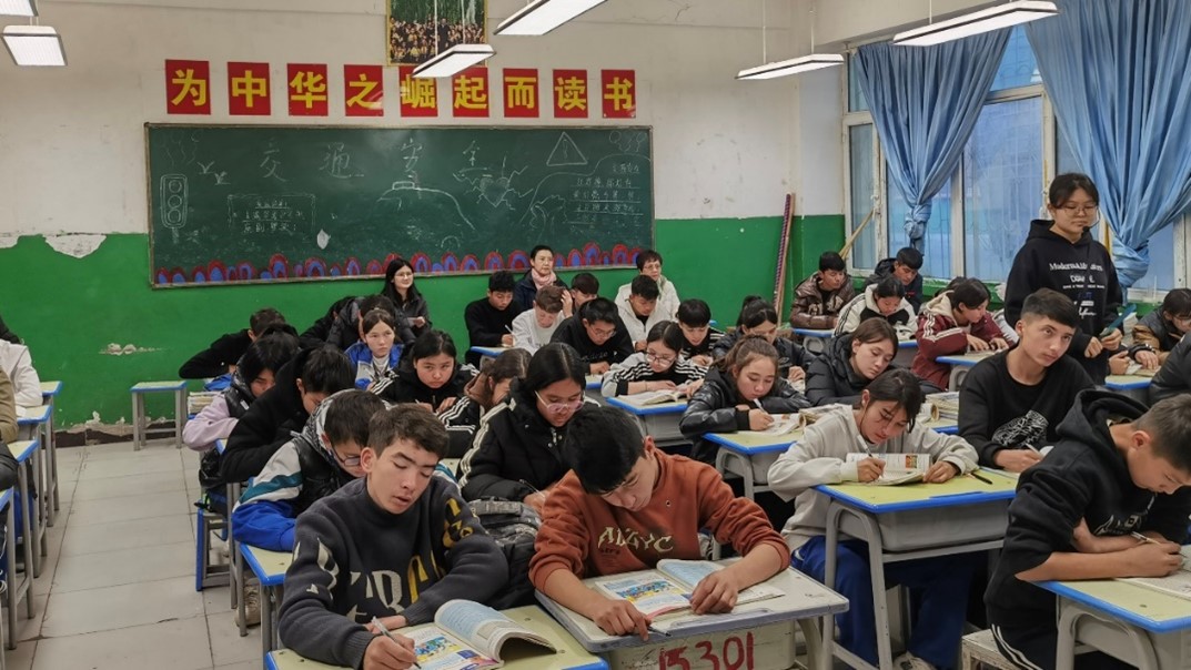 12月5日下午,宋秀葵一行抵达实习基地,首先探访了援疆实习支教团师生的宿舍,实地了解了支教团的生活与居住环境。宋秀葵与实习支教学生进行了面对面的亲切交流,并代表外国语学院向学生们赠送了慰问品,传递学院的深切关怀与殷切期望。随后,与支教团师生共同前往麦盖提县第四中学参加听课活动和座谈会。
