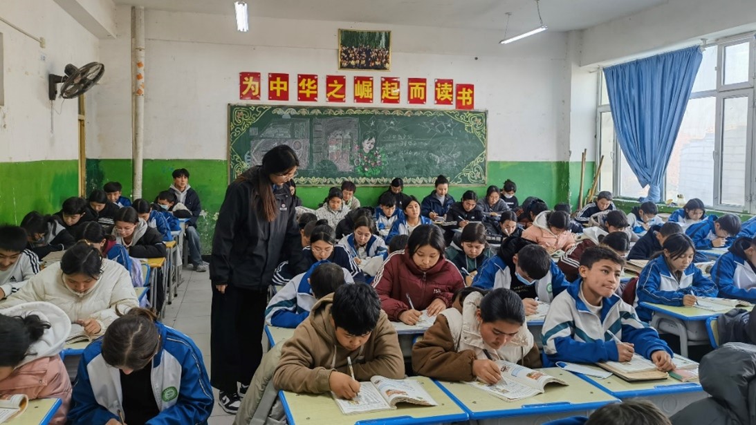 宋秀葵对实习支教学生的责任心表示肯定,并着重强调了采用有效教学方法的重要性。她鼓励支教学生们积极实施分层教学策略,与实习学校携手并进,共同探索和开展个性化教学。西艾力•吾思曼对实习支教学生的表现与教学成果给予了高度评价,并细致对当地学情进行分析,鼓励实习支教学生深入了解刀郎民族的文化发展历史和当地风土人情,以更加饱满的热情投入到教学中。